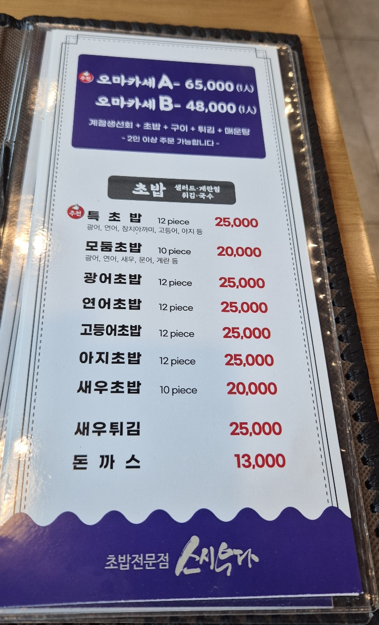 오마카세 A, B코스도 있지만