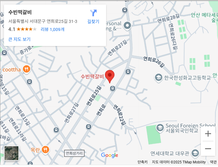 연희동 수빈 지도 검색